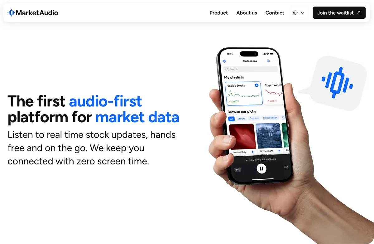 Verkkosivusto suunniteltiin kertomaan MarketAudion idea selkeästi heti etusivulta alkaen. Pääviesti ”Your portfolio, out loud.” tiivistää palvelun tarkoituksen nopeasti. Sivuston rakenne ohjaa käyttäjän ongelmasta ratkaisuun ja näyttää konkreettisesti, missä tilanteissa ja millä laitteilla palvelua voi käyttää. Kokonaisuus rakennettiin responsiiviseksi, jotta sivusto toimii luotettavasti sekä mobiilissa että eri laiteympäristöissä.