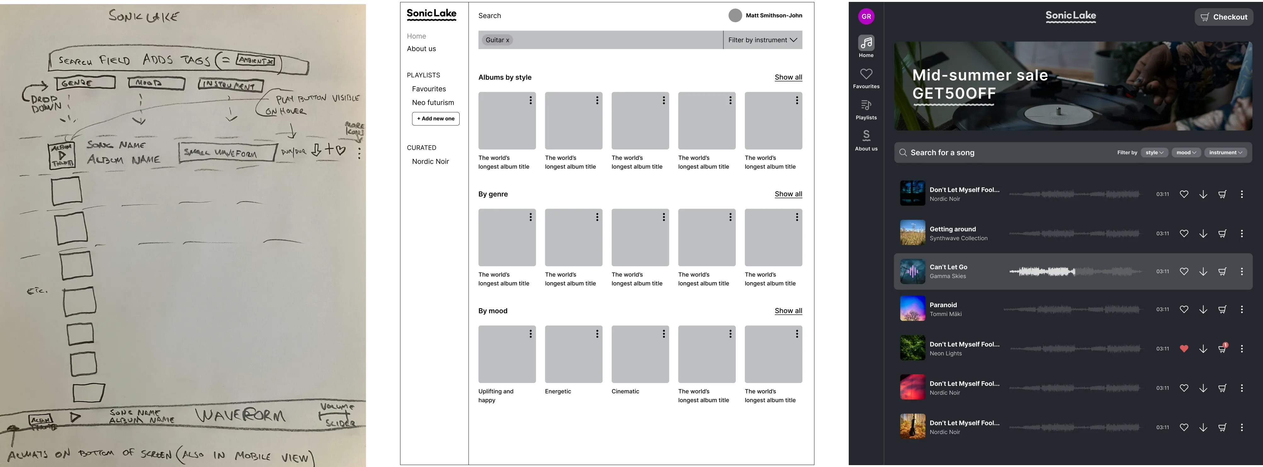 Soniclake lähestyi Kisko Labsia vuonna 2023 tavoitteella viedä pilottialustan ulkoasu ja palvelukokemus lähemmäs kansainvälisiä musiikkilisensointialustoja. Toiveena oli maksujärjestelmän lisäys pilottiin jotta kappaleiden ostaminen ei vaatisi jatkossa turhia lisävaiheita. Laajan musiikkikatalogin selailun tueksi toivottiin lisäksi Soniclaken omien soittolistojen lisäystä palveluun.